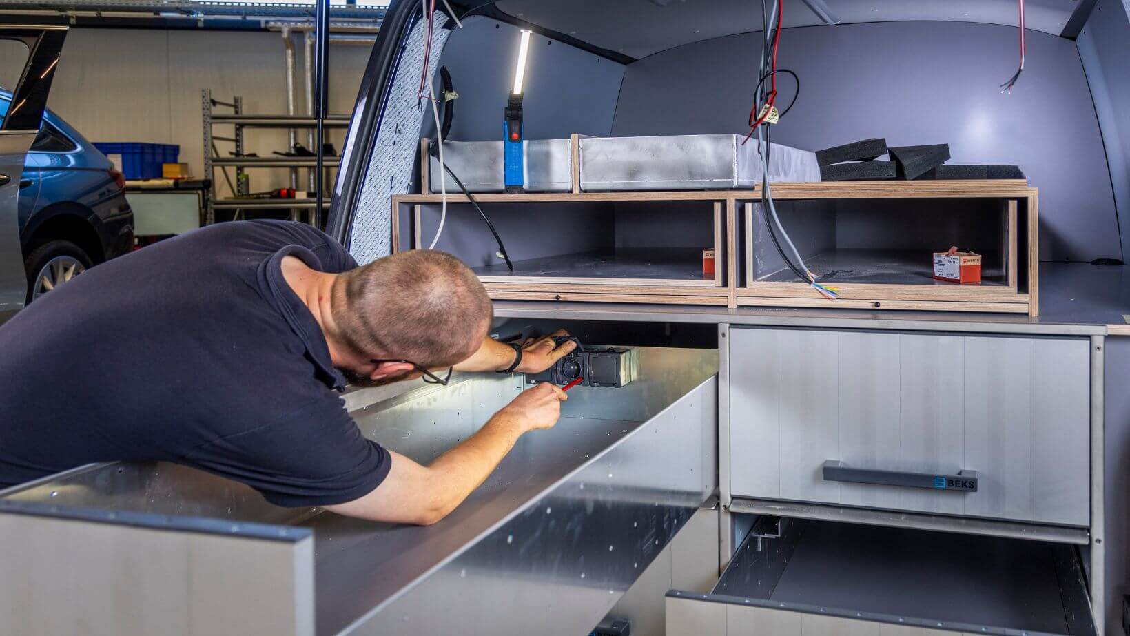 Efficiënt werken met een functionele bedrijfswageninrichting. Door altijd het juiste gereedschap snel bij de hand te hebben. Bij HTM luisteren we naar jouw wensen en denken met je mee. Om zo op maat gemaakte oplossingen te bieden die perfect aansluiten bij jouw behoeften. Met ons uitgebreide assortiment, van gereedschappen en verlichting tot koffersets en andere accessoires, vind je altijd wat je nodig hebt. Laat je bedrijfswagen professioneel inrichten en transformeer deze tot een veilige en productieve mobiele werkplek met de oplossingen van Beks.